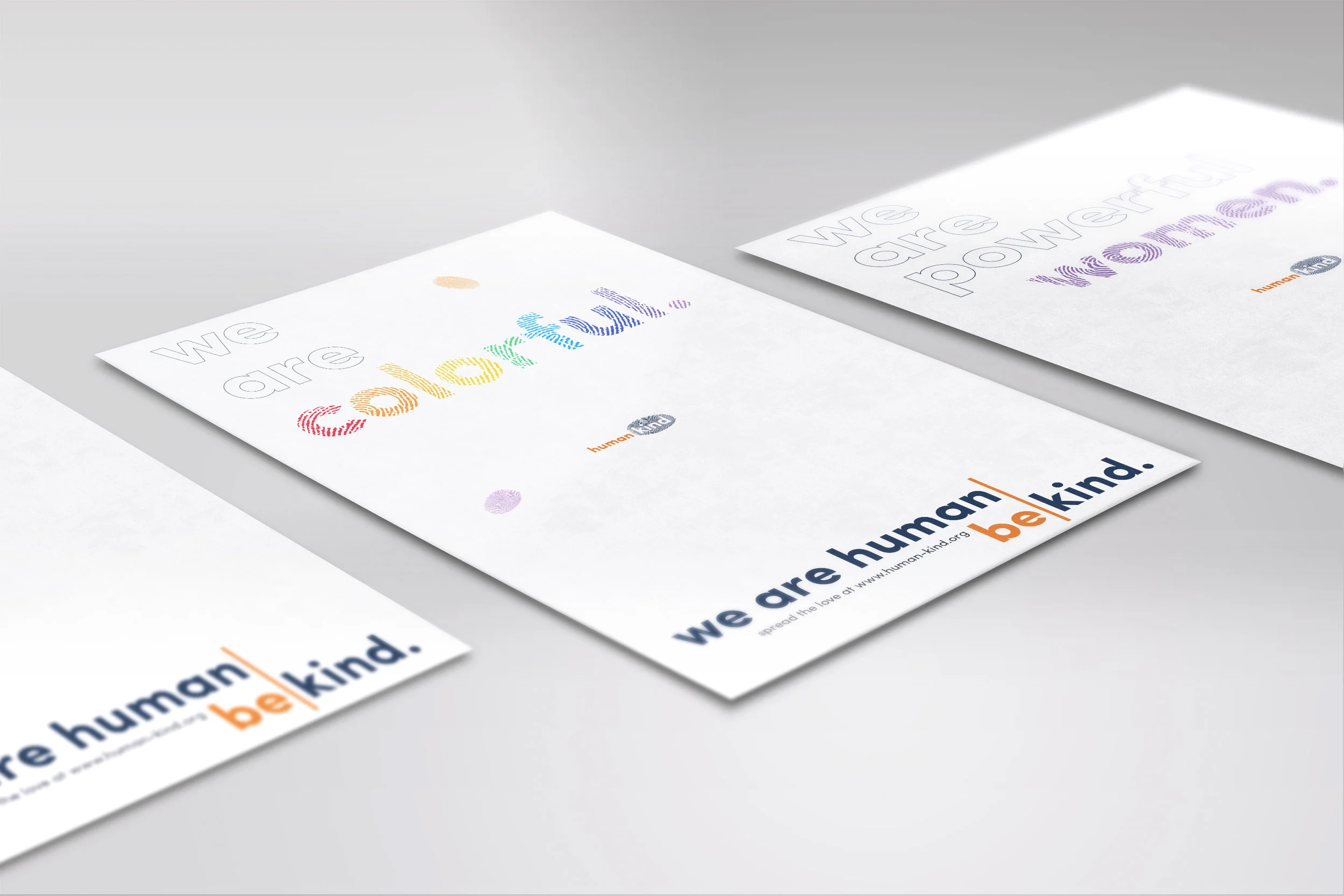 HumanKind is a social movement built around the concept of mutual love and respect. The project was designed as a collaboration between myself and another designer, Casey Capece, as a commentary on the political and social climate of America, and centers around a main simple idea: we are human - be kind. The project involved posters that welcomed passers-by to add their fingerprint in multi-colored ink, regardless of ethnicity, sexual orientation, gender, or other distinguishing traits.